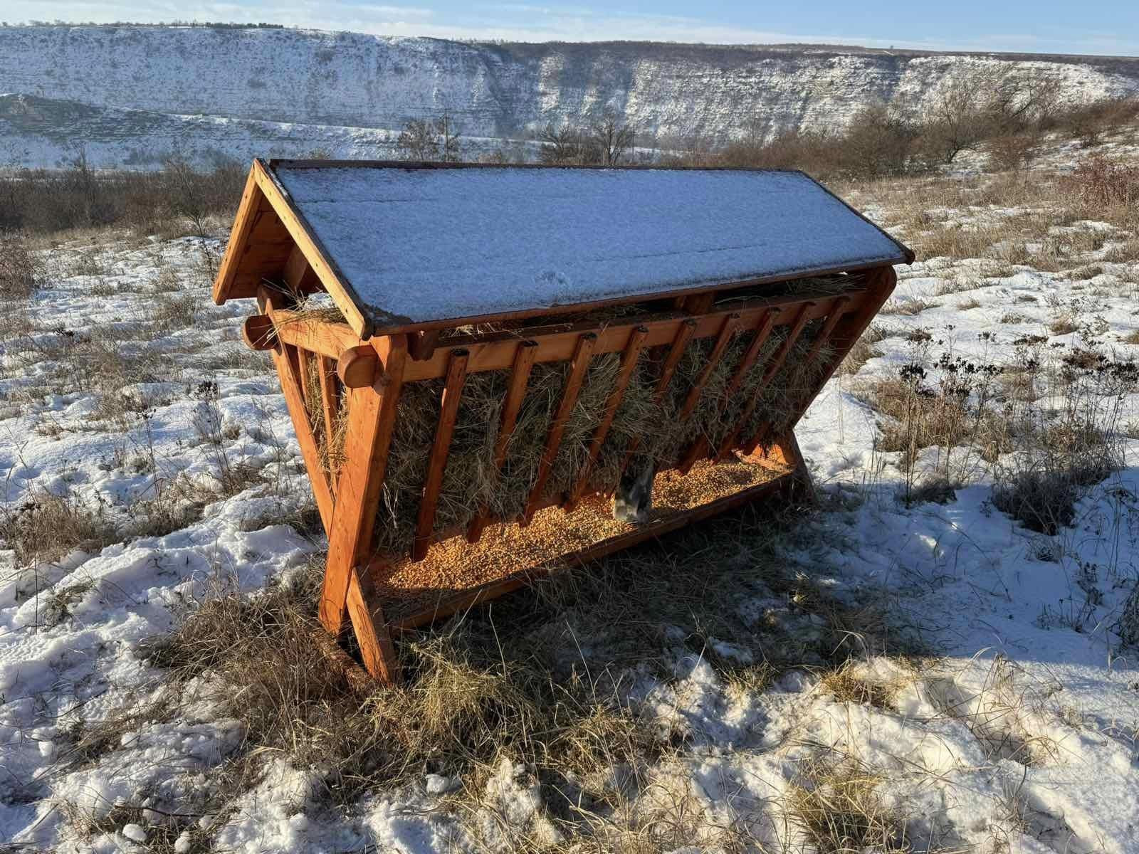 Încă de anii trecuți, cu suportul Suediei, am donat 3 hrănitoare pentru hrănirea complementară a animalelor pe timp de iarnă, dar și am dotat cu o cabină de wc și câteva seturi de pubele pentru colectarea selectivă a deseurilor, rezervația.