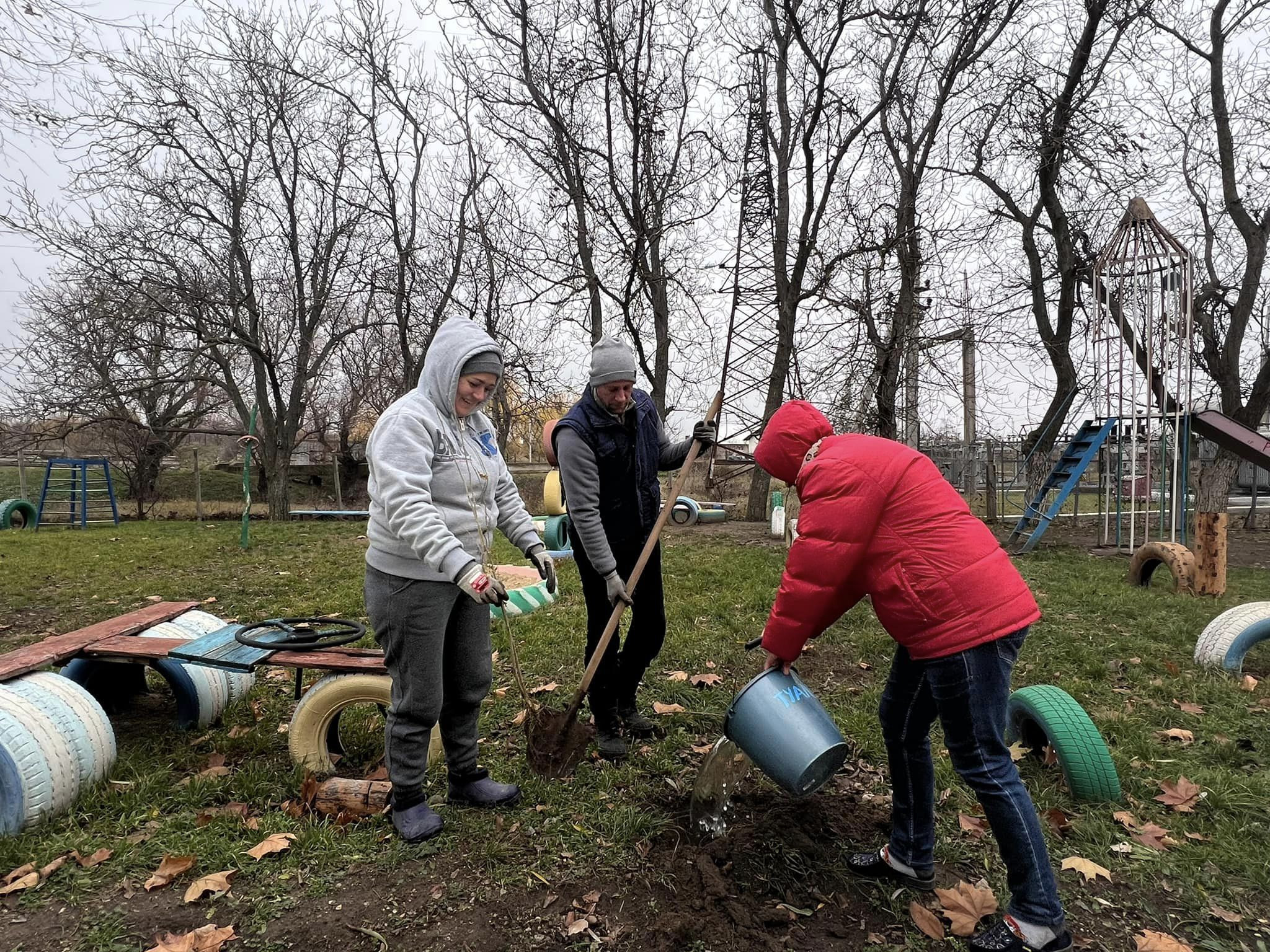 Vineri, pe 25 noiembrie, la Copanca, cu părinții și profesorii, am participat la lucrările de amenajare a spațiului ogrăzii grădiniței și a spațiului adiacent. Împreună am curățat și plantat puieți de arbori forestieri cât și de arbuști decorativi.